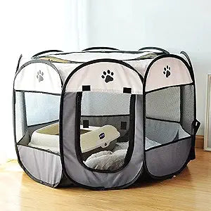 eguro y fiable: el corralito para gatos está hecho de tela Oxford, ligero y duradero. A través de la malla negra en la parte superior y los otros 8 lados, se pueden ver fácilmente, lo que pondrá tanto tu mente en paz. El amplio espacio aireado también puede evitar que tus mascotas se sientan sofocadas u oprimidas. Un lugar perfecto para que tus mascotas entregen, se recuperen o descansen.🐶Desplegable y portátil: nuestra tienda de campaña para mascotas se puede desplegar rápidamente sin ningún montaje de piezas metálicas. Para facilitar el transporte y el almacenamiento, se puede plegar cuando no se utiliza. Su malla aireada y antimosquitos hace que este parque sea aplicable tanto en interiores como en exteriores. Un mejor salón exterior para tus mascotas cansadas Además de gatos pequeños, perros pequeños, gatitos y cachorros, nuestro corralito para gatos también es adecuado para conejos, hurones y cobayas.Multiusos y bricolaje: la tragaluz y el lateral serían una manera conveniente para que interactúes con tu mascota o organizes el espacio interior. Puedes poner almohadillas de pañales dentro del bolígrafo para gatos debajo de las mascotas recién nacidas para una limpieza eficiente. A medida que crecen, este corralito para mascotas también puede ser útil para su entrenamiento de orinal con una caja de arena para gatos en él.🐶Tamaño y espacio adecuados: nuestro tamaño de tienda de campaña plegable para mascotas es de 29 x 29 x 17 pulgadas, lo que significa que no ocupa mucho espacio y es fácil de almacenar. Además, el espacio interior es lo suficientemente grande para tus mascotas. Por ejemplo, un Devon Rex y sus bebés solo han ocupado medio espacio de parque para gatos. Hay suficiente espacio para las actividades diarias de las mascotas o muebles para gatos (caja de arena para gatos, poste rascador, cuenco para gatos...)